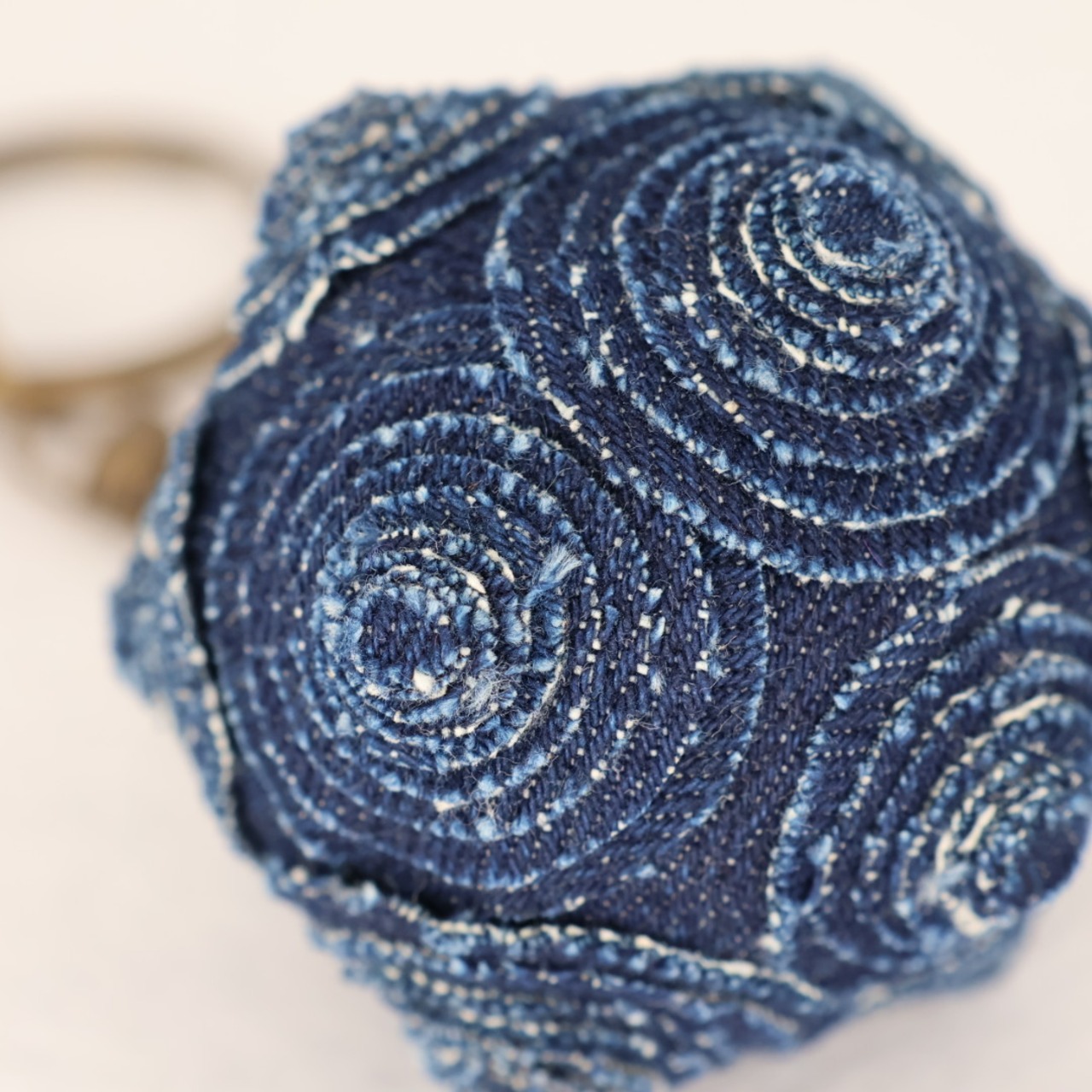 "denimo+” ブランドの岡山産のヴィンテージデニムでできたバッグチャームです。