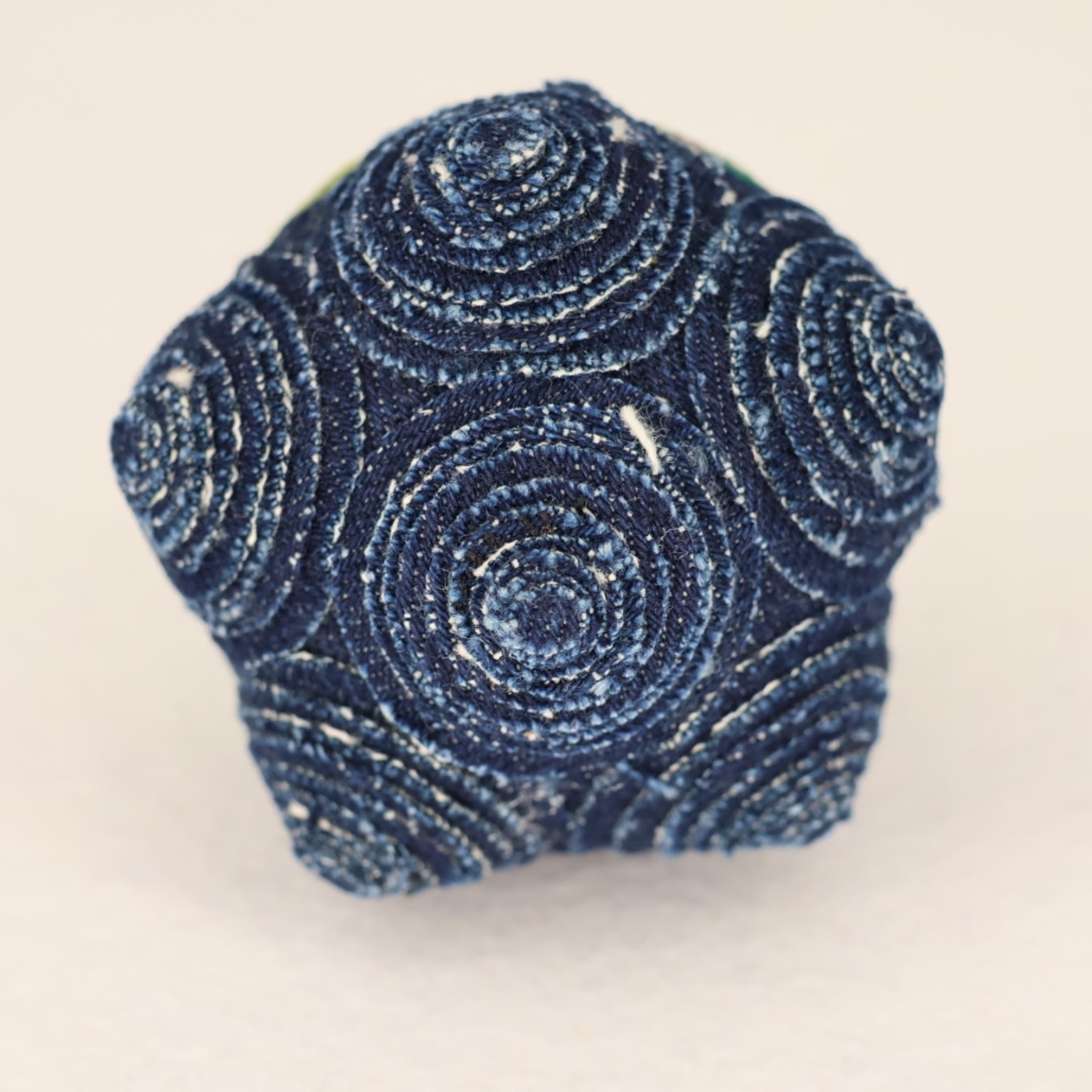 "This brooch is made of vintage denim from Okayama under the denimo+ brand.