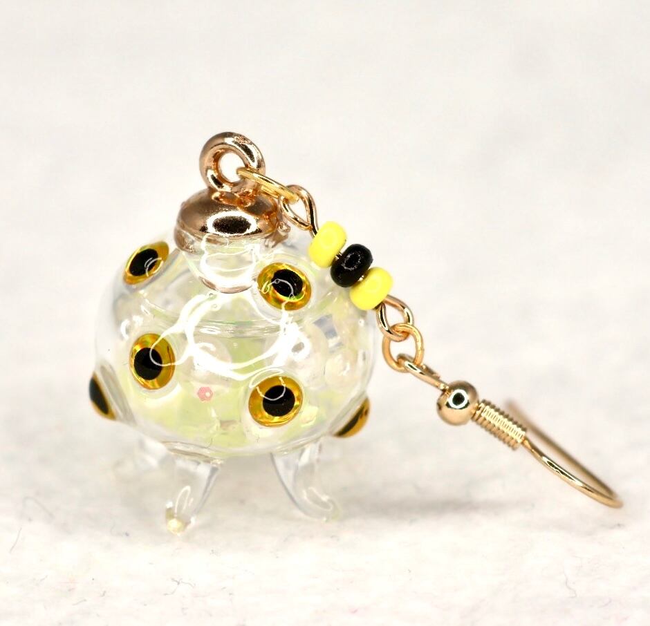 Colorful and cheerful yellow jellyfish earrings from the new “denimo+” collection. Because they are handmade, each one is an original design that you will never find anywhere else. They are light and comfortable to wear, yet have a strong presence. Wearing the cute yellow jellyfish will surely create a gorgeous escape in your daily life! Why don't you spend an energetic day, feeling the sunlight of the season through the earrings?