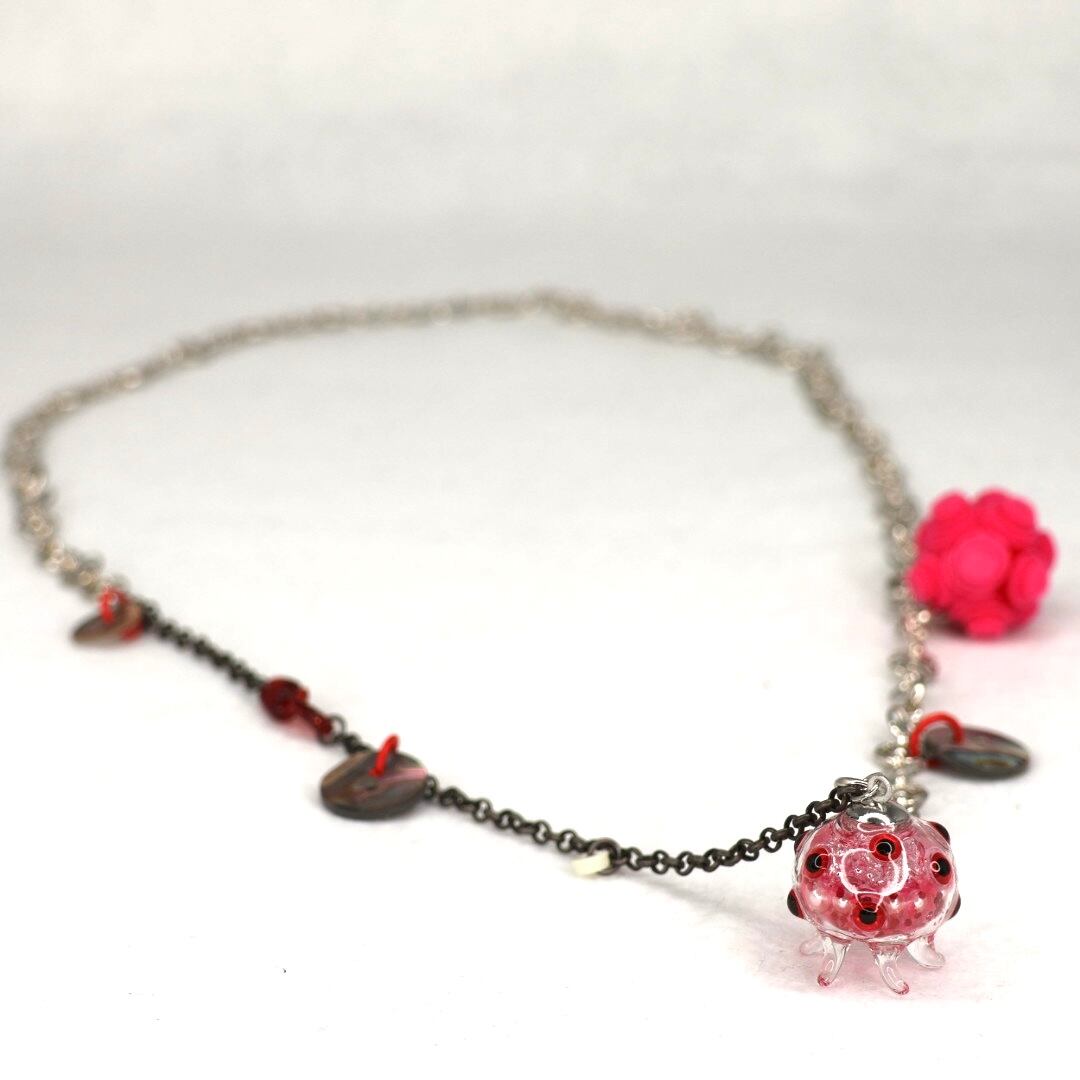 海の生き物"くらげ"をモチーフにした、"denimo+"オリジナルのネックレスが登場しました。キュートな赤い水玉のくらげちゃんは、存在感バツグン。カジュアルなTシャツスタイルから、アロハウエアなど幅広いシーンで活躍してくれること間違いなし!